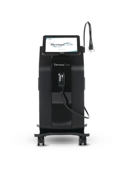 DermaClear to urządzenie kosmetyczne z obracającą się o 360° końcówką, która wykonuje silną hydrodermabrazję wspomaganą próżnią, zapewniając jednoczesny peeling chemiczny i fizyczny, usuwanie zanieczyszczeń oraz wysoce skuteczną penetrację roztworów w głąb skóry.